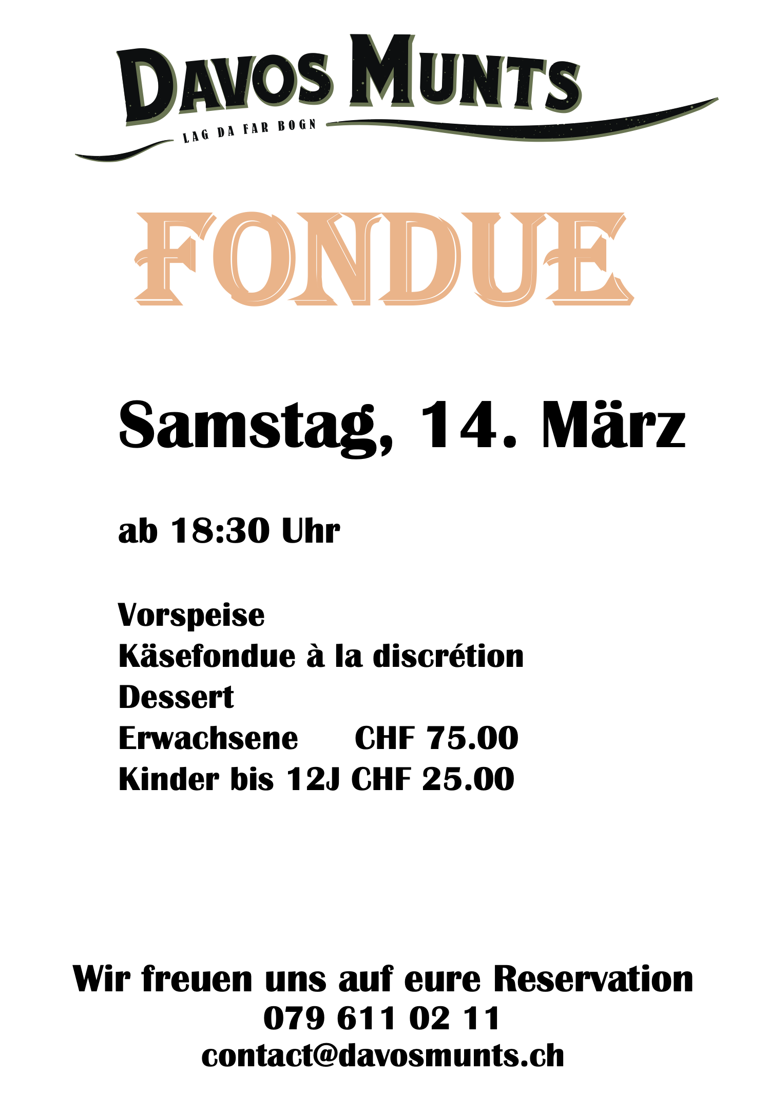 Reservationen werden ausschliesslich online entgegengenommen.
